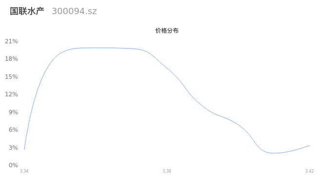 然后我们来看下当日成交的价格分布。经过分析发现,该股票当日成交价格波动低于10个最小波动价位,由于可以参考的样本量非常少,价格分布分析的结果不具有指导意义,下图仅供参考。