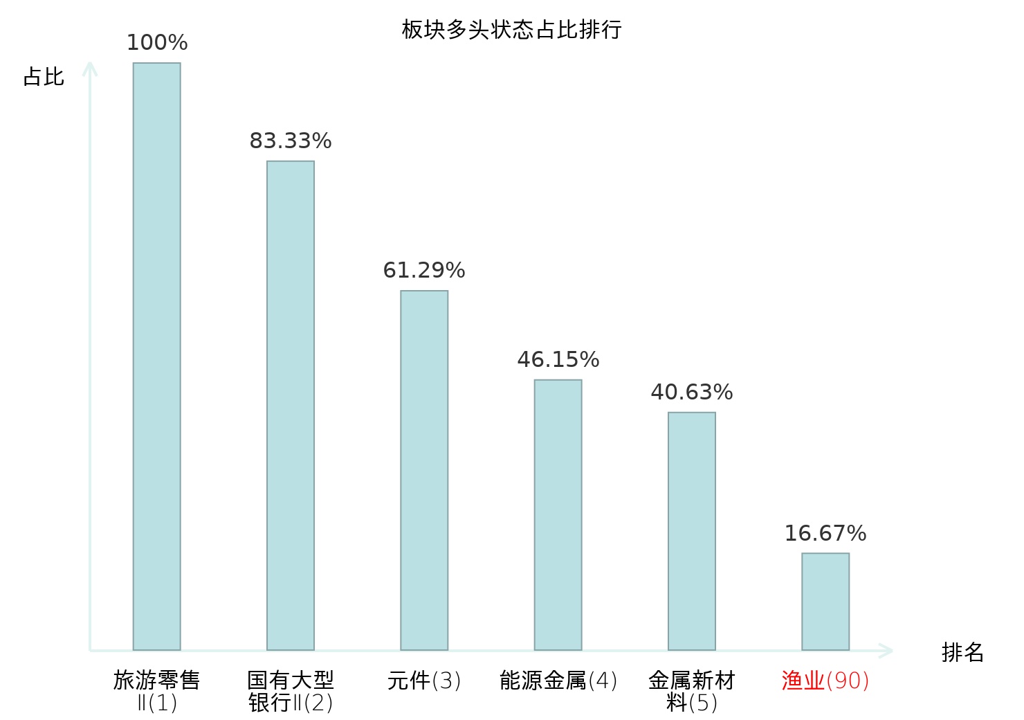 从主力宝信号数据分析,国联水产所属的渔业板块中共1只股票处于主力多头状态,主力多头状态占比在全行业中排名第90位,较昨日下降5位。较高的排名表明主力对于该板块整体看多意愿较强,此次排名下降可能反映主力对该板块态度出现一定弱化。全市场所有行业板块中主力多头状态占比排名中,旅游零售Ⅱ板块位居第一;数字媒体板块名次提升最快,较昨日上升67位。这些变动揭示了主力资金在不同行业间的配置倾向变化,为投资者判断板块相对强弱及潜在趋势提供了客观依据。