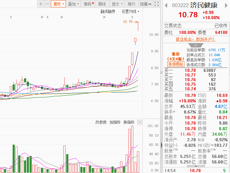 市场情绪:市场热点较为杂乱,个股涨多跌少,全市场超2900只个股上涨。今日共85股涨停,连板股总数26只,35股封板未遂,封板率为71%(不含ST股、退市股)。焦点股方面,高度板(昨6连板)大元泵业跌停,市场连板高度降至4连板的济民健康。此外,机器人叠加商业航天概念的国机精工12天7板,服务器电源概念股同洲电子7天6板,华为产业链的华胜天成9天6板。