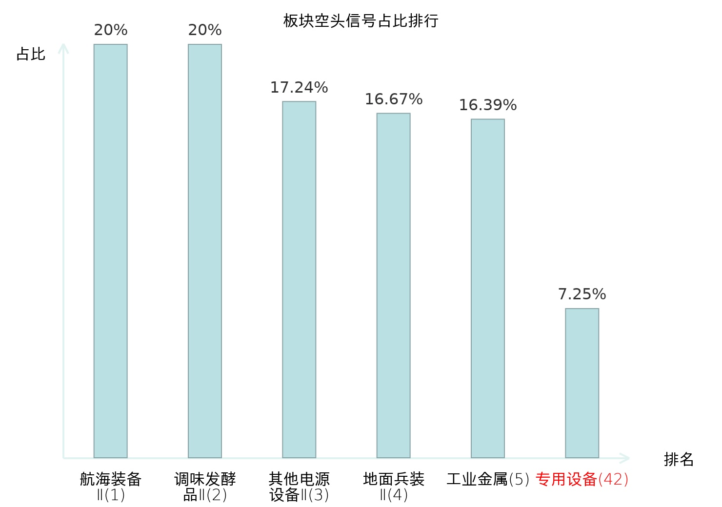 从主力宝信号数据分析,尤洛卡所属的专用设备板块中共有14只股票发出主力空头信号,主力空头信号占比在全行业中排名第42位,较昨日下降18位。排名越高说明主力当日卖出意愿越强。较高排名表明主力对于该板块整体看空态度较强,此次排名下降可能反映了主力对该板块态度的一些微调。全市场所有行业板块中,航海装备Ⅱ板块的主力空头信号占比最高,位居第一。调味发酵品Ⅱ板块名次提升最快,较昨日上升122位。这些变动揭示了不同行业间主力资金动向的趋势,为投资者提供了关于市场情绪和潜在风险的重要线索。