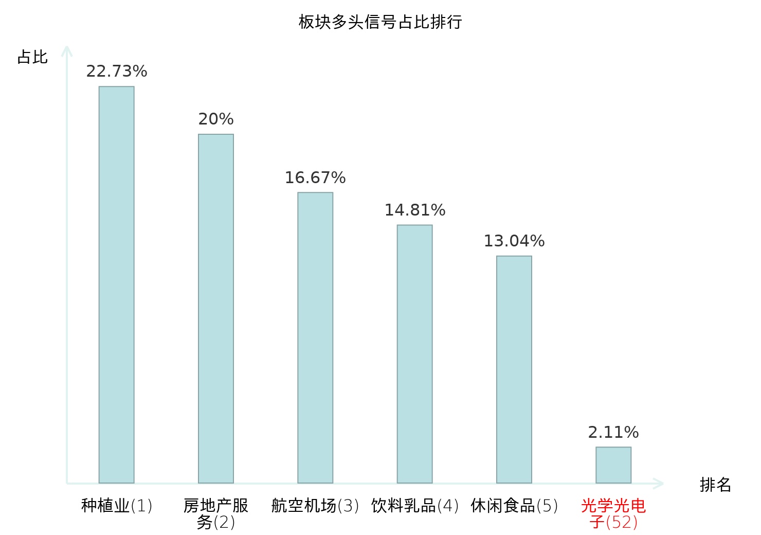 全市场所有行业板块中主力多头信号占比排名中,种植业板块位居第一。厨卫电器板块名次提升最快,较昨日上升109位。