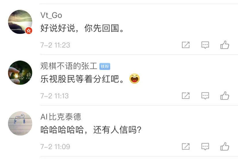 不过,在留下“下周回国”的梗后,截至目前,贾跃亭仍未回国。而按照推算,乐视退本月将从A股市场退市并完成摘牌。网友戏称,贾老板这是在喊老乡别跑,又要回国的节奏。