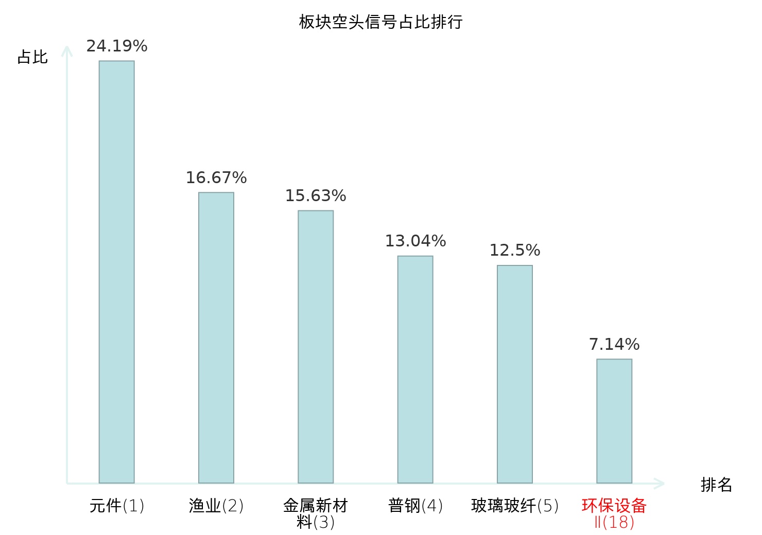 全市场所有行业板块中主力空头信号占比排名中,元件板块位居第一。电子化学品Ⅱ板块名次提升最快,较昨日上升115位。