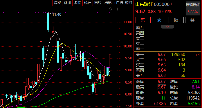 玻纤概念快速拉升,山东玻纤涨停,国际复材中国巨石中材科技跟涨。
