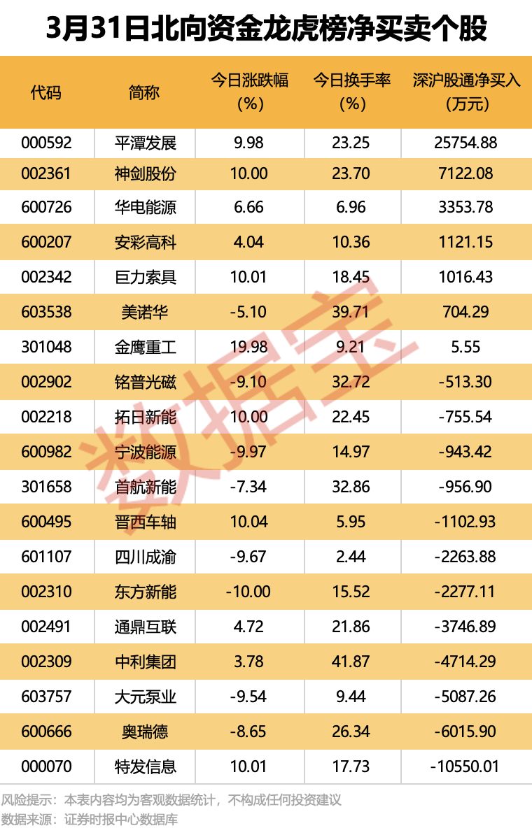 今日龙虎榜现身个股中,7股获北向资金净买入。平潭发展获净买入居首,金额近2.58亿元;神剑股份获北向资金净买入超7000万元,居次席。