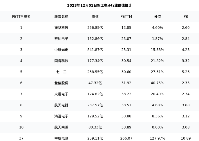 从估值角度看:中航电测最新市盈率PETTM为266.07,在行业内排名37/60,处于127.97分位。