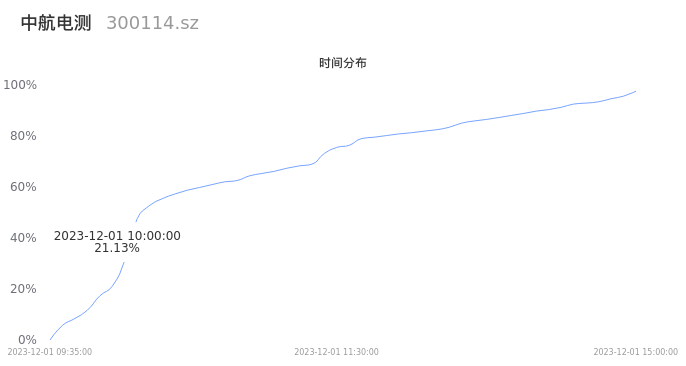 300114中航电测2023年12月01日成交6.77万手,成交金额3.02亿元,相较昨日缩量1.14万手,换手率1.15%,成交清淡。