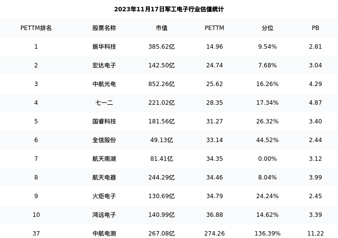 从估值角度看:中航电测最新市盈率PETTM为274.26,在行业内排名37/60,处于136.39分位。
