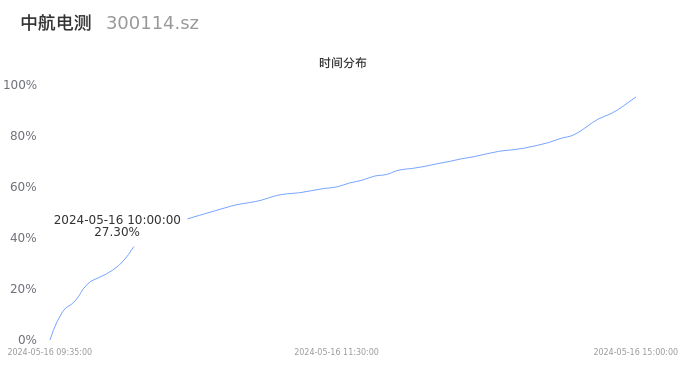 300114中航电测2024年05月16日成交3.61万手,成交金额1.52亿元,相较昨日缩量3.01万手,换手率0.61%,成交清淡。