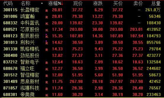 消费电子概念盘中走势活跃,截至收盘,长盈精密尾盘涨停,创历史新高;鸿富瀚、中科蓝讯、国光电器、盈趣科技、立讯精密等均涨停。