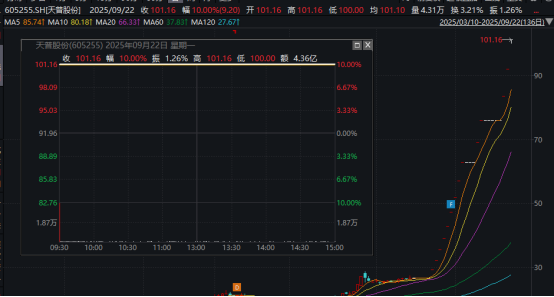 天普股份今日再度涨停,斩获14连板,股价突破100元大关,续创历史新高。