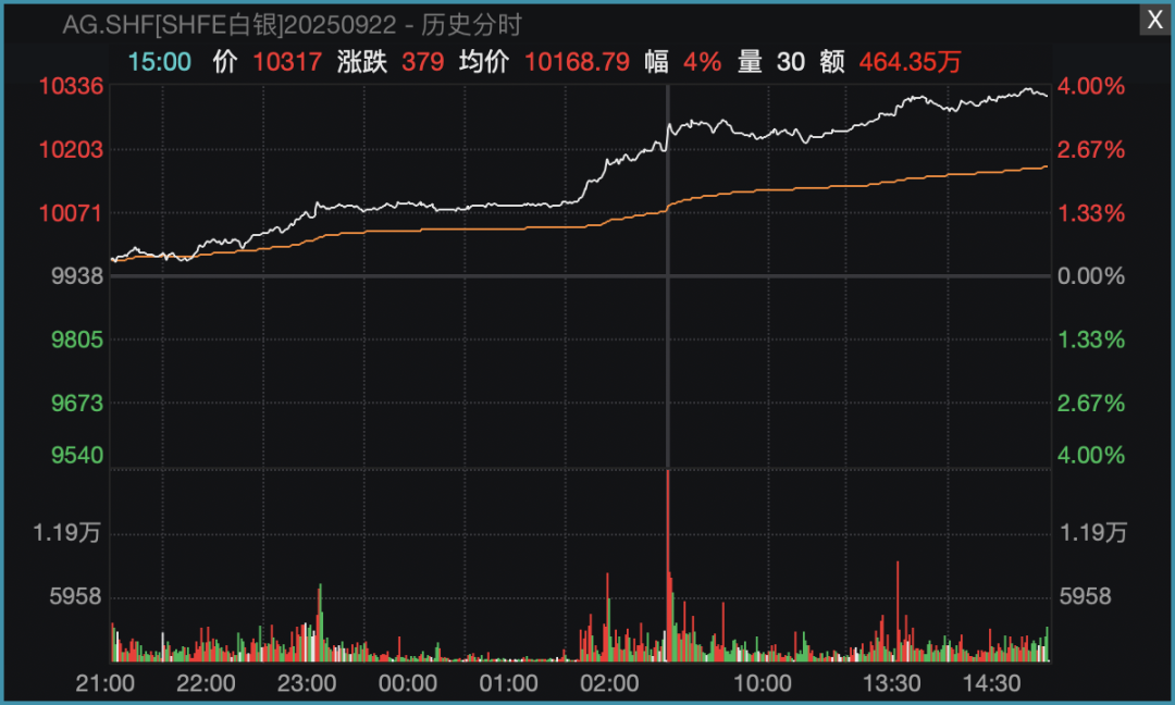 今日,A股小幅震荡上扬,科技股领涨。科创50大涨逾3%,3年半多来首次收盘在1400点之上。上证指数、深证成指等微幅飘红。不过市场下跌个股多于上涨个股,并且成交萎缩至2.14万亿元。盘面上,贵金属、新能源车、消费电子、芯片等板块表现活跃,影视院线、旅游、饮料乳品、农用化工等板块跌幅居前。Wind实时监测数据显示,电子行业获得主力资金逾310亿元净流入,计算机获得逾156亿元净流入,机械设备获得逾69亿元净流入,汽车获得逾41亿元净流入,房地产获得逾20亿元净流入,国防军工、非银金融等也获得超10亿元净流入。医药生物、食品饮料、商贸零售、传媒等均遭主力资金净流出超10亿元。展望后市,中金公司指出,近期A股仍在短线调整期,不改中期趋势。配置上,成长风格近期仍显现扩散及轮动特征,年初至今成长风格呈现扩散(由科技成长扩散至创新药、高端制造、军工、新能源等领域)及轮动(强势板块交替),这种特征后市仍有望继续延续。市场热点方面,今日贵金属概念高开高走,板块指数放量大涨逾6%,成交较前一交易日激增近1倍。板块内所有个股上涨,盛达资源、湖南白银均在午后强势涨停,中金黄金、晓程科技、西部黄金等涨幅居前。国内白银期货主力合约今日盘中一度大涨逾4%,报收10317元,创历史新高。黄金期货主力合约亦大涨逾2%,报收846.5元,同样刷新历史纪录。世界黄金协会调查显示,43%的央行计划在未来12个月内增加黄金储备,这一比例创下历史新高,较去年29%大幅提升,没有任何一家央行预期会减持黄金。更长期来看,76%的央行预计其黄金持仓占储备比例将在未来五年内上升,远高于去年的69%。今年全球央行黄金储备占比自1996年以来首次超过美国国债。白银同样展现出强劲潜力,白银不仅会追随黄金的走势,还受益于工业需求的长期支撑。世界白银协会报告显示,2024年全球白银供需缺口高达1.6亿盎司,且已持续五年。2025年缺口预计仍将达1.17亿—1.49亿盎司之间,库存消耗速度创历史纪录。民生证券表示,俄乌冲突、中东紧张等地缘冲突等维持风险溢价,金价迭创新高;白银因其工业属性以及补涨驱动下,价格屡创新高。中长期看,央行购买黄金+美元信用弱化为主线,持续看好金价中枢上移,黄金板块迎来右侧布局机会。新能源车概念股临近收盘快速拉升,板块指数几乎以最高点收盘。长盈精密、佰奥智能等多股在尾盘不到半小时内冲击20%涨停,合锻智能、大洋电机、华盛昌等超30股涨停或涨超10%。“金九银十”是传统车市销售旺季,此外,根据《关于延续和优化新能源汽车车辆购置税减免政策的公告》,今年将是免征新能源汽车车辆购置税的最后一年,为了争夺购置税减免政策的最后一个“金九银十”,车企蜂拥发布新产品以吸引消费者。据不完全统计,9月将有近40款新车(包括改款和全新车型)扎堆上市。截至上周末,9月已有28款新车上市。而2024年同期上市的车型为17款。今年9月,有望成为有史以来非车展月新车上市最多的一个月。仅9月17日一天,就有5款车型密集上市,包括2025款奔驰EQS、上汽荣威M7 DMH、2026款腾势N9、吉利银河M9、奇瑞风云X3L,其中后两款是全新车系,且五款车全部为新能源车型。9月下旬,即将上市的重磅车型还包括全新蔚来ES8、理想i6、极氪9X、全新问界M7、沃尔沃XC70等,这些也都是新能源车型。华福证券认为,2025年国内外电车市场稳步提升,全球新能源车销量预期同比增速超20%。产品力和综合性价比的比拼或将成为豪华车市场的主旋律。建议关注新车周期启动、产品力强的主机厂。
