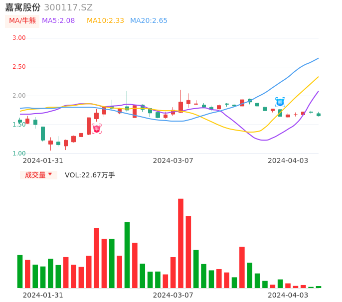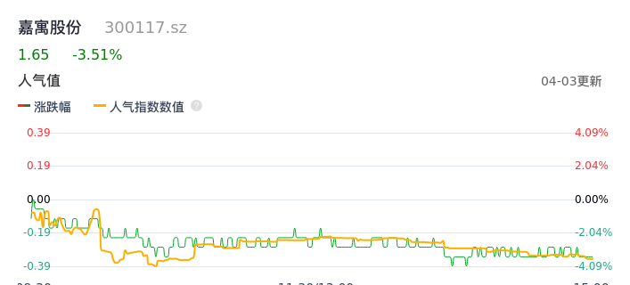 04月03日,嘉寓股份收报1.65,股价涨幅-3.51%,成交金额3775.04万元,换手率3.16%。