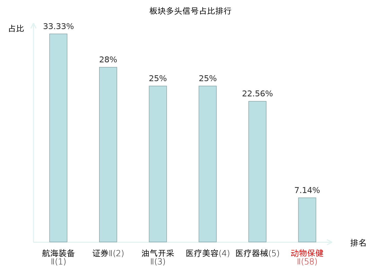 全市场所有行业板块中主力多头信号占比排名中,航海装备Ⅱ板块位居第一。油气开采Ⅱ板块名次提升最快,较昨日上升123位。