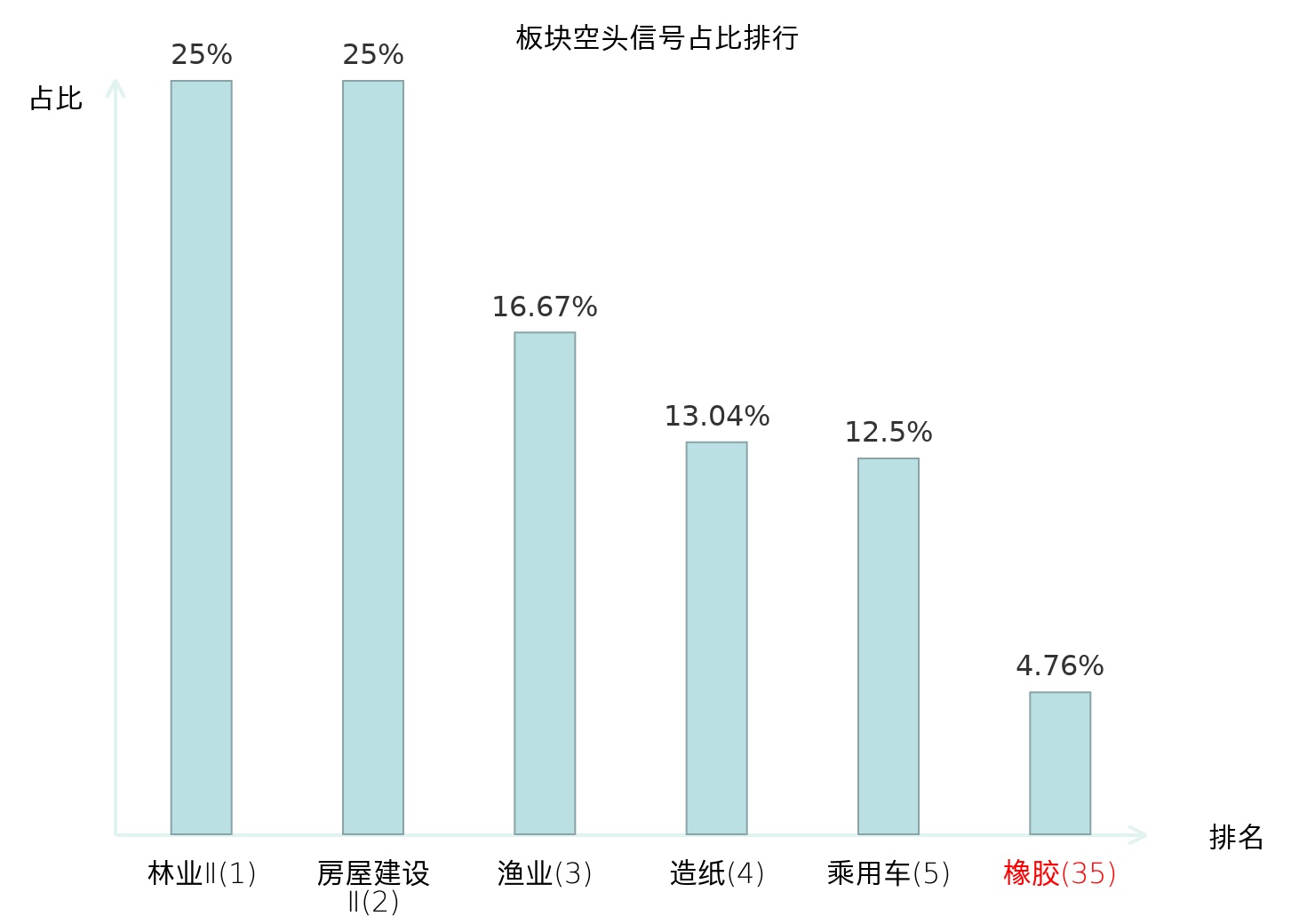 从主力宝信号数据分析,阳谷华泰所属的橡胶板块中共有1只股票发出主力空头信号,主力空头信号占比在全行业中排名第35位,较昨日下降25位。排名越高表明主力当日卖出意愿越强,而此次排名下降可能反映了主力对该板块态度的变化。全市场所有行业板块中,林业Ⅱ板块的主力空头信号占比最高,位居第一;通信设备板块名次提升最快,较昨日上升115位。这些变动揭示了不同行业间主力资金偏好的变化,为投资者提供了市场趋势的重要参考。