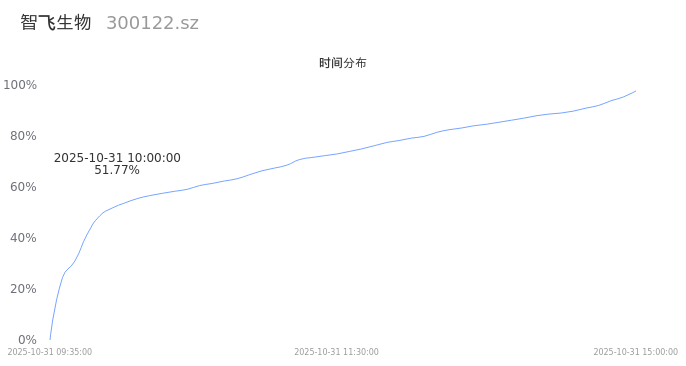 300122智飞生物2025年10月31日成交40.58万手,成交金额8.38亿,相较昨日放量14.46万手,换手率2.87%,成交清淡。
