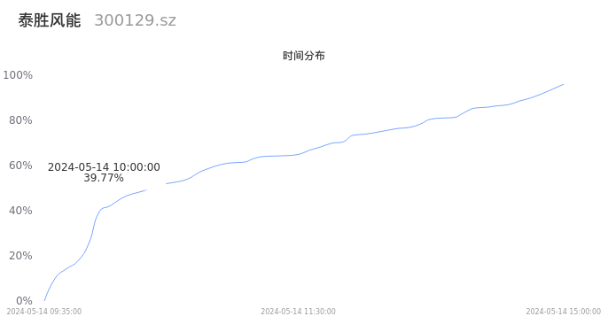 300129泰胜风能2024年05月14日成交9.27万手,成交金额7164.96万元,相较昨日缩量4.48万手,换手率1.43%,成交清淡。