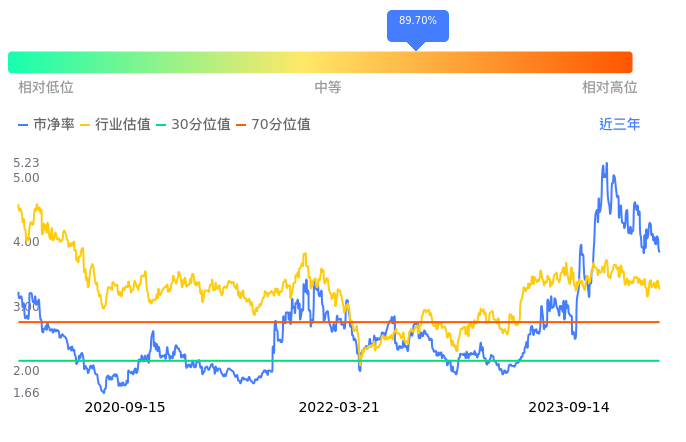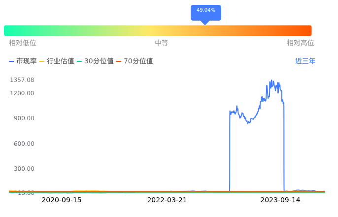 2023年09月14日,新国都下跌1.14%收于22.59,今日成交金额2.40亿元。下文将从市盈率PETTM、市净率PB、市现率3个角度去分析公司估值情况。