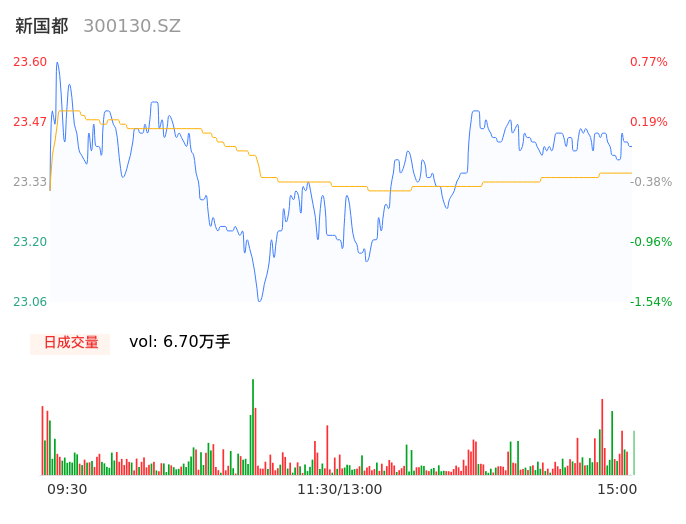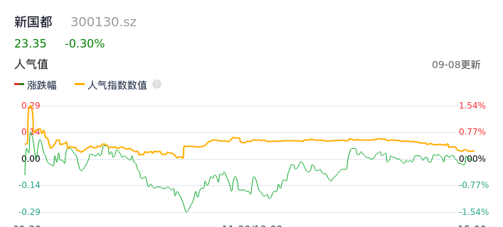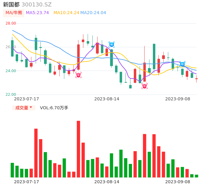 09月08日,新国都收报23.35,股价涨幅-0.30%,成交金额1.57亿元,换手率1.65%。