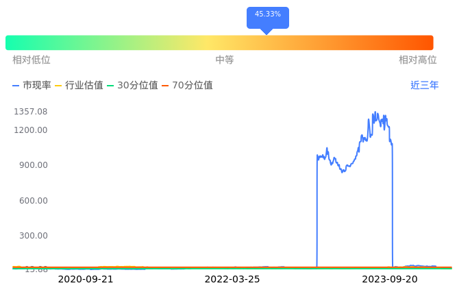 2023年09月20日,新国都下跌1.16%收于21.28,今日成交金额1.36亿元。下文将从市盈率PETTM、市净率PB、市现率3个角度去分析公司估值情况。