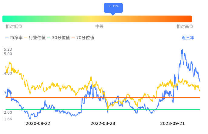 新国都当前市净率PB为3.57,在所属的计算机设备中,市净率PB排52,前五名分别为华铭智能市净率1.30、思维列控市净率1.38、智莱科技市净率1.41、旋极信息市净率1.51、新北洋市净率1.61。新国都当前市净率PB为3.42,超过近3年88.19%的历史数据。