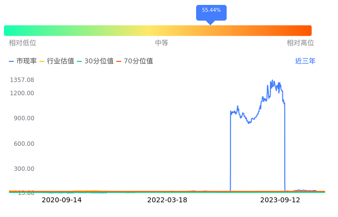 2023年09月12日,新国都下跌0.54%收于23.90,今日成交金额1.56亿元。下文将从市盈率PETTM、市净率PB、市现率3个角度去分析公司估值情况。