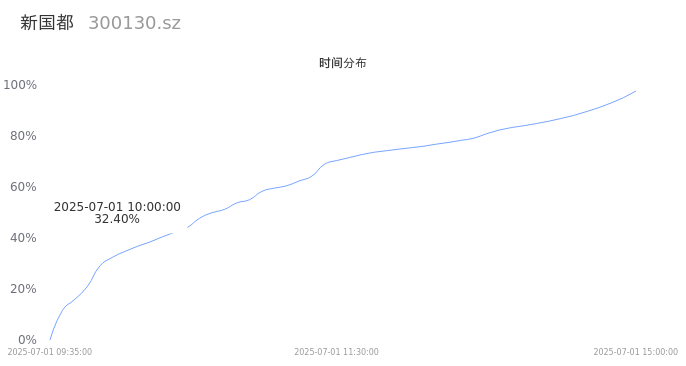 根据成交分布分析,该股票当天缩量成交,成交活跃。时间上看,早盘前半小时成交量占据当天总成交量的32.4%;价格上看,成交呈现左偏峰。成交分布分析主要研究股票成交的分布特性,不具有预测功能,请知悉。