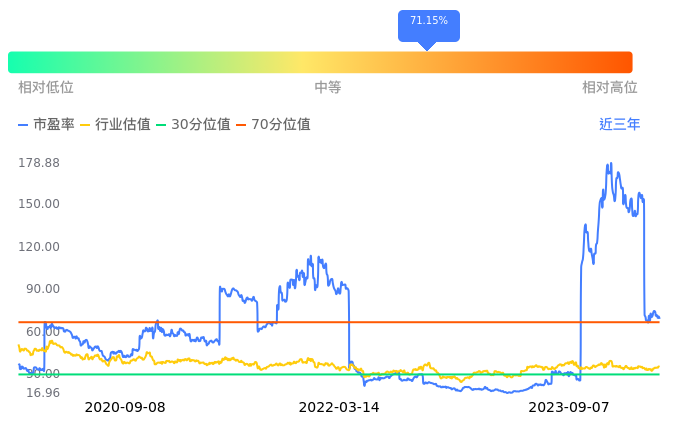 2023年09月08日,新国都下跌0.30%收于23.35,今日成交金额1.57亿元。下文将从市盈率PETTM、市净率PB、市现率3个角度去分析公司估值情况。