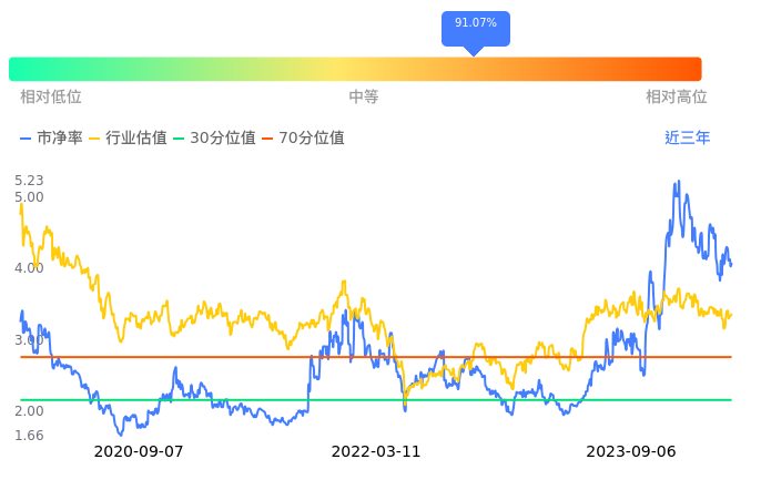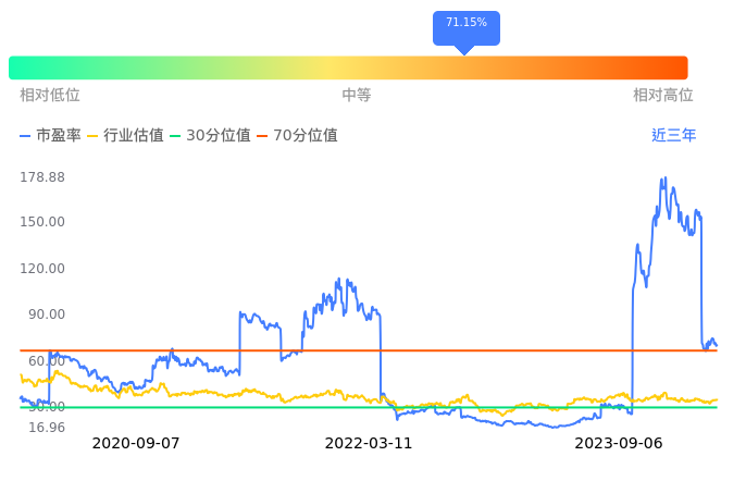 2023年09月07日,新国都下跌2.29%收于23.42,今日成交金额1.66亿元。下文将从市盈率PETTM、市净率PB、市现率3个角度去分析公司估值情况。