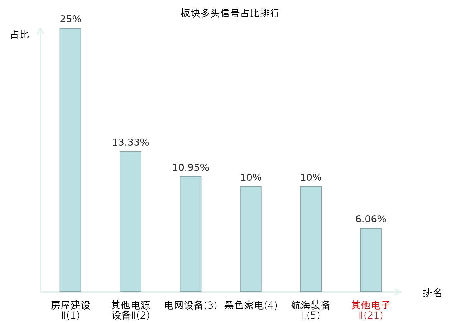 从主力宝信号数据分析,英唐智控所属的其他电子Ⅱ板块中共2只股票发出主力多头信号,主力多头信号占比在全行业中排名第21位,较昨日上升55位。较高的排名表明主力对于该板块整体看多意愿较强,此次排名大幅上升可能反映了主力对该板块态度的积极调整。全市场所有行业板块中主力多头信号占比排名中,房屋建设Ⅱ板块位居第一。航海装备Ⅱ板块名次提升最快,较昨日上升112位。这些变动揭示了不同行业间主力资金动向的结构性变化,为投资者评估板块相对强度和潜在趋势提供了客观依据。