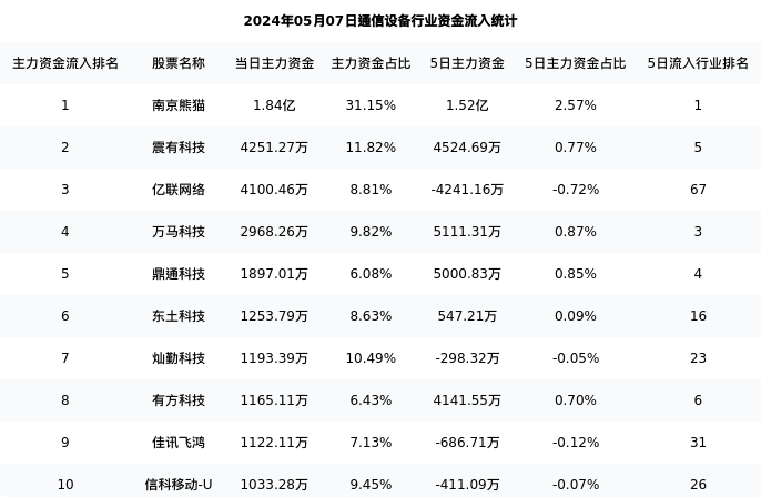 从主力资金流向来看,通信设备行业今日主力资金流入123.58亿元,在所有申万二级行业中排名:99/131。