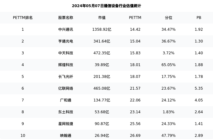 大富科技最新报告期数据为一季度,下表汇总了通信设备行业内市值靠前的公司一季度主要经营数据