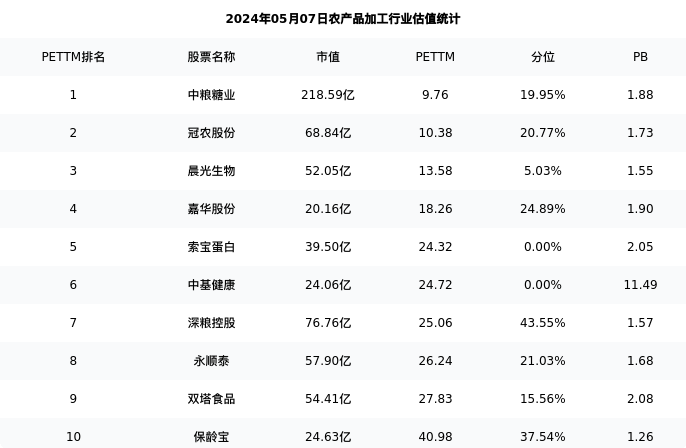 从估值角度看:晨光生物最新市盈率PETTM为13.58,在行业内排名3/23,处于5.03分位。