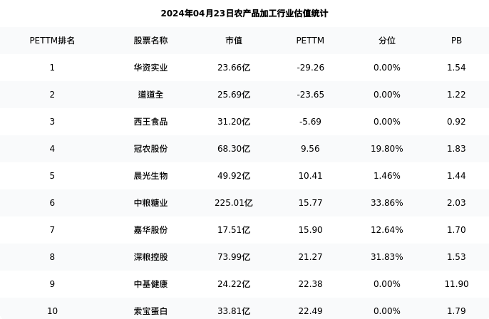 从估值角度看:晨光生物最新市盈率PETTM为10.41,在行业内排名2/23,处于1.46分位。
