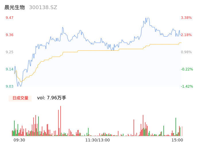04月22日,晨光生物收报9.37,股价涨幅2.29%,成交金额7407.47万元,换手率1.78%。