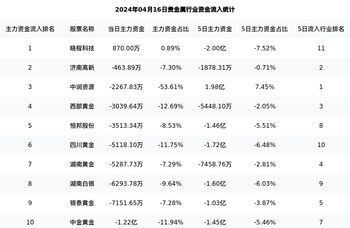 从主力资金流向来看,贵金属行业今日主力资金流入32.17亿元,在所有申万二级行业中排名:111/131。