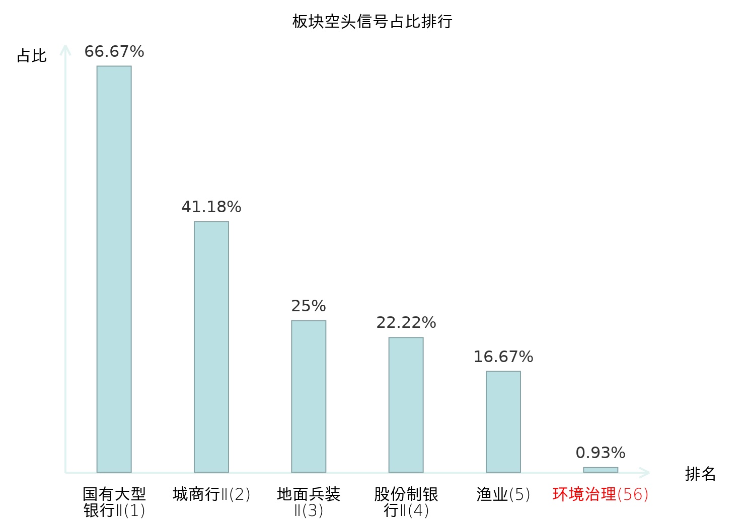 全市场所有行业板块中主力空头信号占比排名中,国有大型银行Ⅱ板块位居第一。小金属板块名次提升最快,较昨日上升117位。