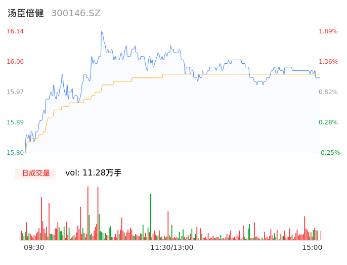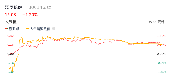 05月09日,汤臣倍健收报16.03,股价涨幅1.20%,成交金额1.81亿元,换手率1.00%。