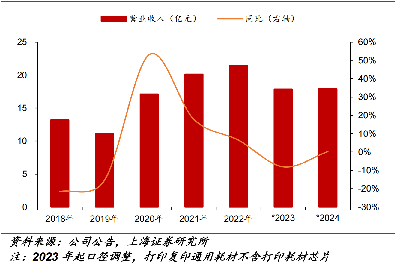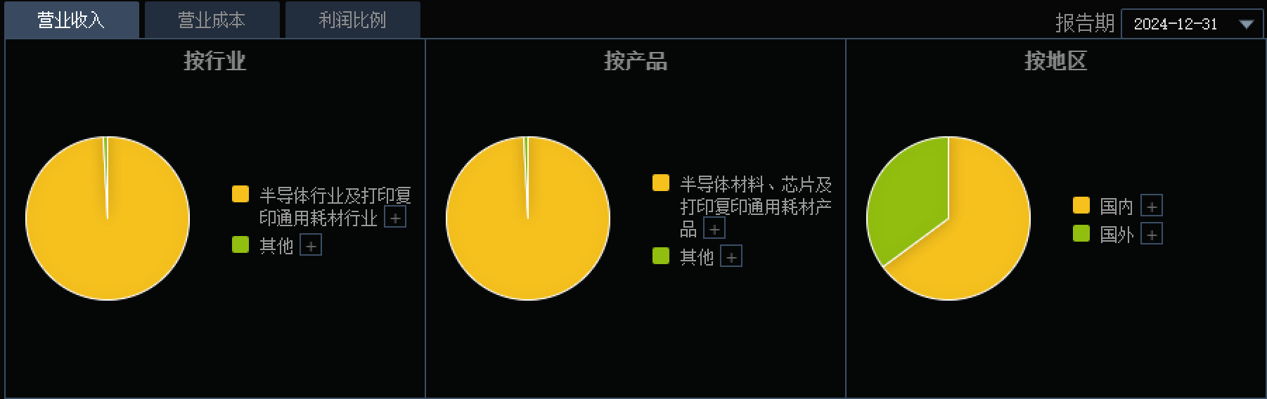 A)志在高远,成长为“卡脖子”创新材料平台型公司。公司打印耗材起家,业务逐步拓展至半导体创新材料领域,已经成长为国内领先的“卡脖子”创新材料平台型公司。目前公司已形成半导体创新材料、传统打印复印通用耗材两大业务板块。