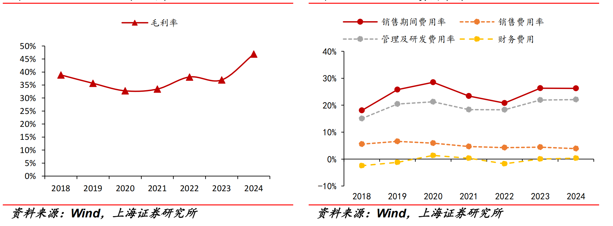 图表4:2018-2024公司毛利率(左)2018-2024费用率情况(右)