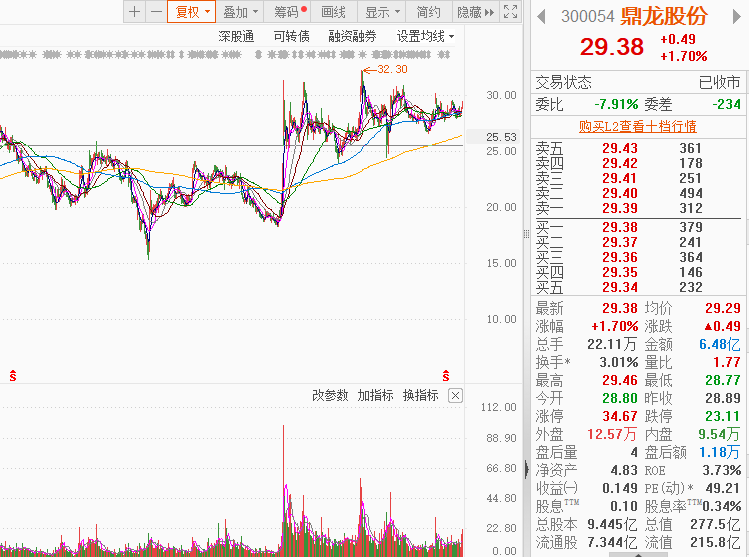 鼎龙股份是半导体产业领域的上游,涉及光刻胶、半导体抛光、3D打印材料等多个领域,近1年股价随科技自主可控、国产替代的催化顺势上升(优于大市),阶段性底部逐步抬高,股价还屡创新高;当前股价和估值对比业绩预期仍处于低估区间,后市增长空间巨大,十大流通股东中有多家外资、险资和公私募机构的身影,市值200多亿左右易炒作,深受游资和主力的喜爱;近期温和放量上行,各周期均线呈多头排列向上,股价站稳在各均线之上,技术面上金叉信号(5日MACD和10日MACD)已显现,股价有望加速。