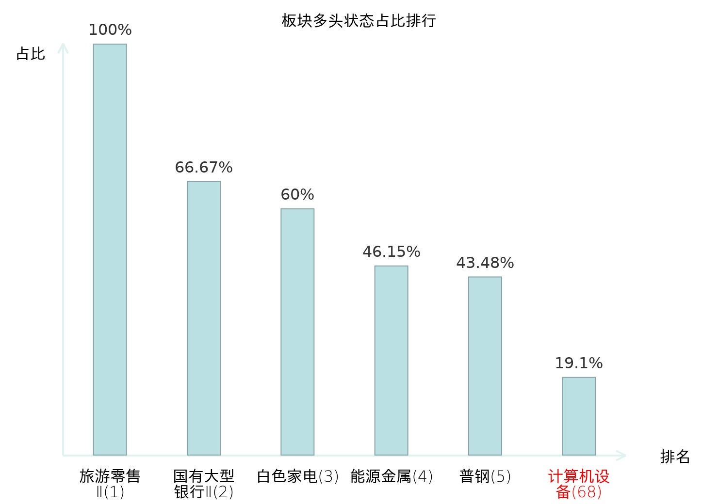 全市场所有行业板块中主力多头状态占比排名中,旅游零售Ⅱ板块位居第一。光学光电子板块名次提升最快,较昨日上升59位。