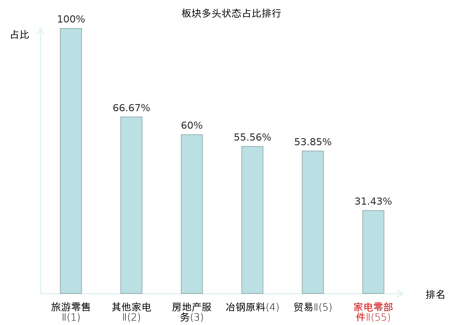 从主力宝信号数据分析,秀强股份所属的家电零部件Ⅱ板块中共有11只股票处于主力多头状态,主力多头状态占比在全行业中排名第55位,较昨日下降10位。较高的排名表明主力对于该板块整体看多意愿较强,但此次排名下降可能反映了主力对该板块态度的调整。全市场所有行业板块中主力多头状态占比排名中,旅游零售Ⅱ板块位居第一;保险Ⅱ板块名次提升最快,较昨日上升65位。这些变动揭示了不同行业间主力资金偏好的变化,为投资者提供了市场情绪和潜在投资机会的重要参考。