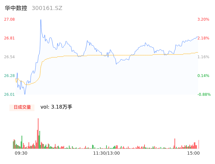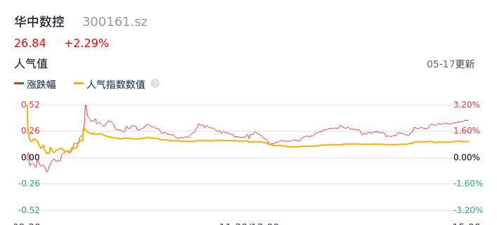 05月17日,华中数控收报26.84,股价涨幅2.29%,成交金额8455.84万元,换手率1.88%。