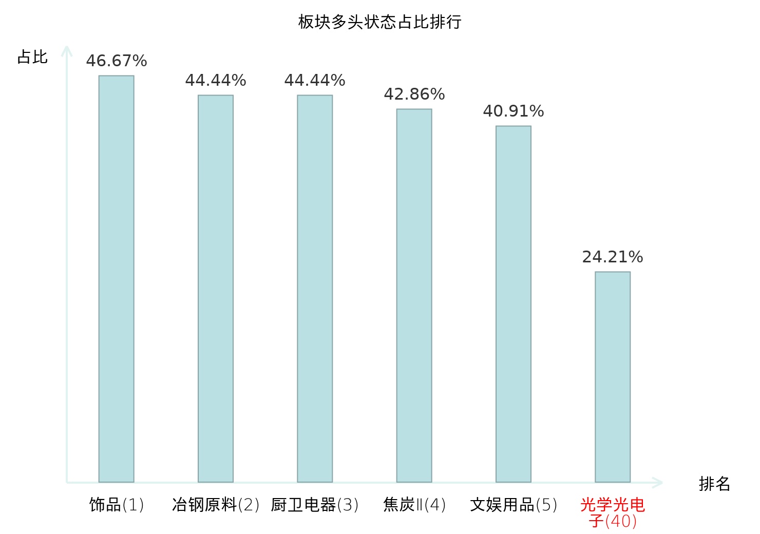 全市场所有行业板块中主力多头状态占比排名中,饰品板块位居第一。专业连锁Ⅱ板块名次提升最快,较昨日上升68位。