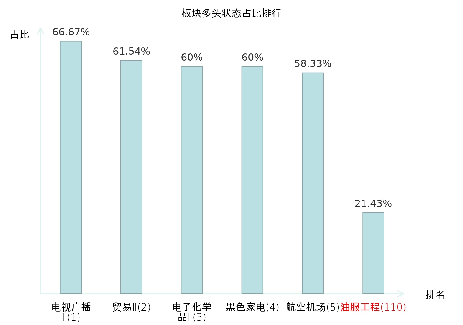 从主力宝信号数据分析,通源石油所属的油服工程板块中共3只股票处于主力多头状态,主力多头状态占比在全行业中排名第110位,较昨日上升2位。排名上升表明主力对该板块整体看多意愿略有增强;较高的绝对排名仍反映主力对该板块整体态度偏谨慎。全市场所有行业板块中主力多头状态占比排名中,电视广播Ⅱ板块位居第一;黑色家电板块名次提升最快,较昨日上升80位。这些变动体现了主力资金在不同行业间的配置倾向变化,为投资者评估板块相对强弱及潜在资金流向提供了客观参考依据。