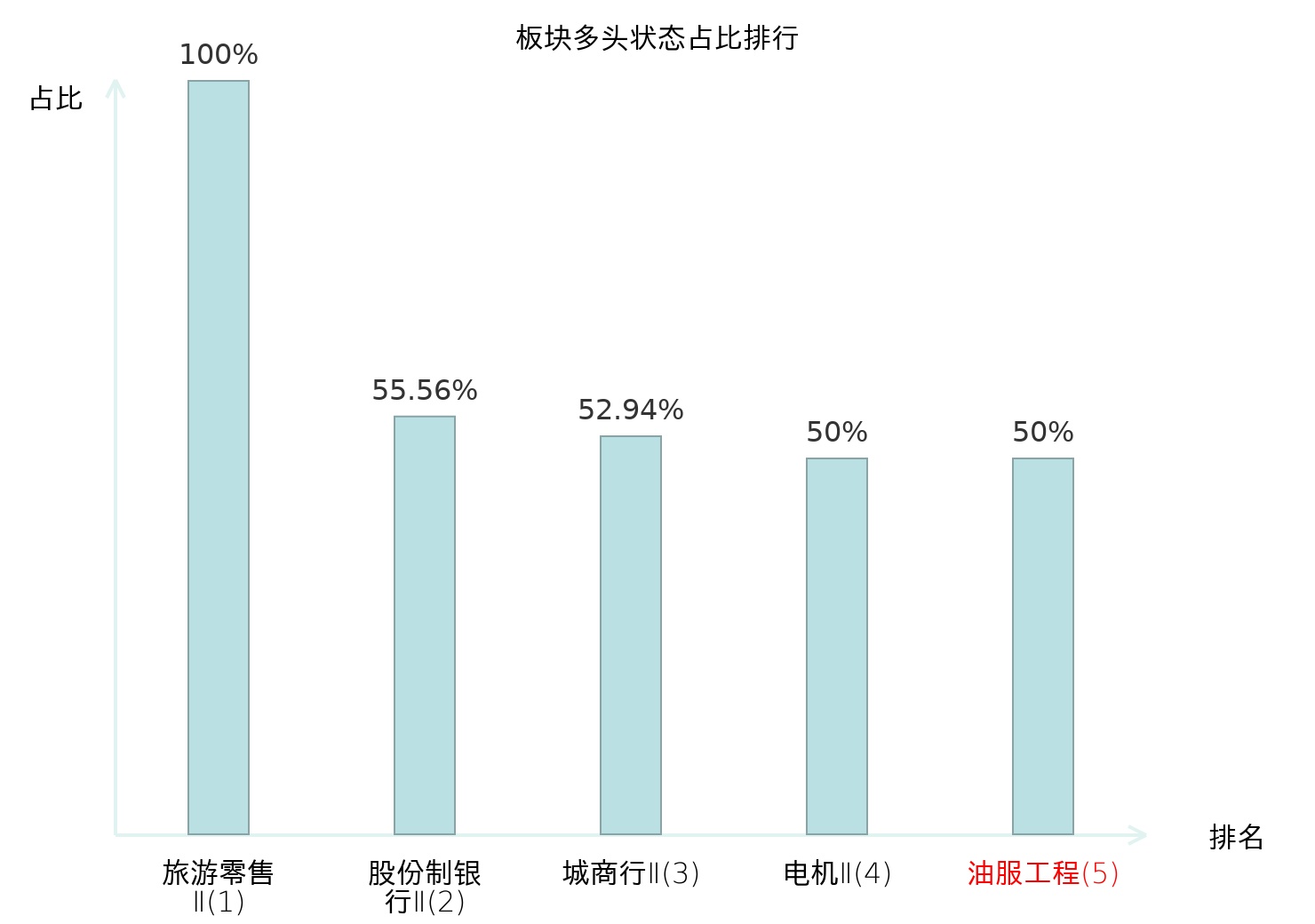 从主力宝信号数据分析,通源石油所属的油服工程板块中共有7只股票处于主力多头状态,主力多头状态占比在全行业中排名第5位,较昨日上升3位。排名的提升表明主力对油服工程板块整体看多意愿增强,为主力进场状况提供了积极的参考依据。全市场所有行业板块中,旅游零售Ⅱ板块的主力多头状态占比最高,位居第一;互联网电商板块名次提升最快,较昨日上升65位。这些变化反映了主力资金在不同行业间的偏好调整,为投资者提供了观察市场趋势的重要线索。