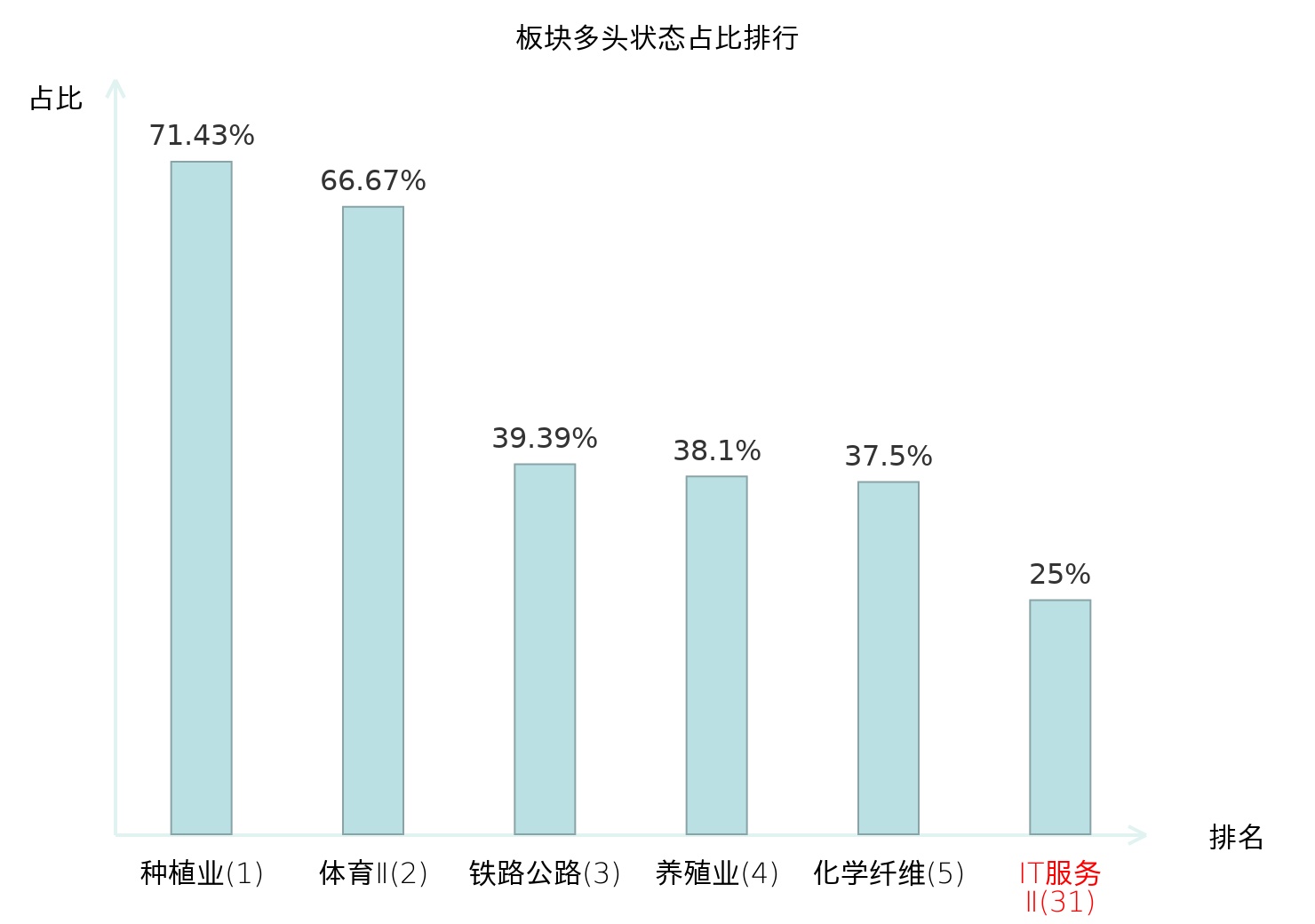 从主力宝信号数据分析,东方国信所属的IT服务Ⅱ板块中有33只股票处于主力多头状态,主力多头状态占比在全行业中排名第31位,较昨日上升2位。排名的提升表明主力对板块整体的看多意愿有所增强。全市场所有行业板块中,种植业板块的主力多头状态占比最高,位居第一;养殖业板块名次提升最快,较昨日上升99位。这些变动反映了不同行业板块间主力资金动向的变化,为投资者观察市场趋势提供了重要参考。