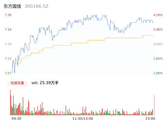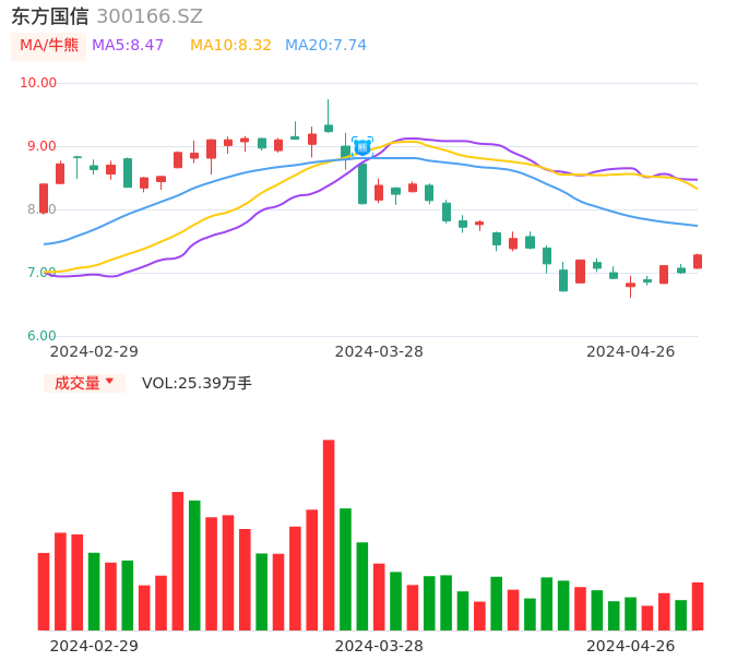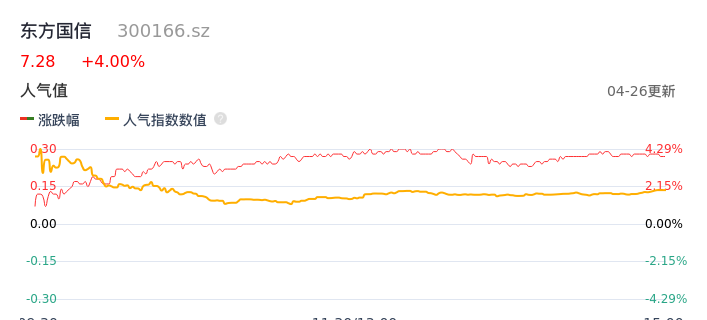 04月26日,东方国信收报7.28,股价涨幅4.00%,成交金额1.83亿元,换手率2.76%。