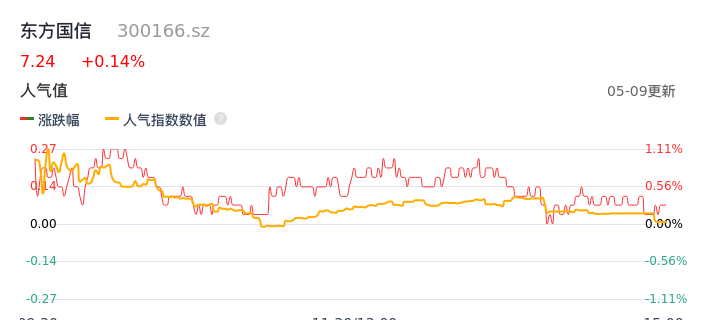 05月09日,东方国信收报7.24,股价涨幅0.14%,成交金额1.12亿元,换手率1.67%。